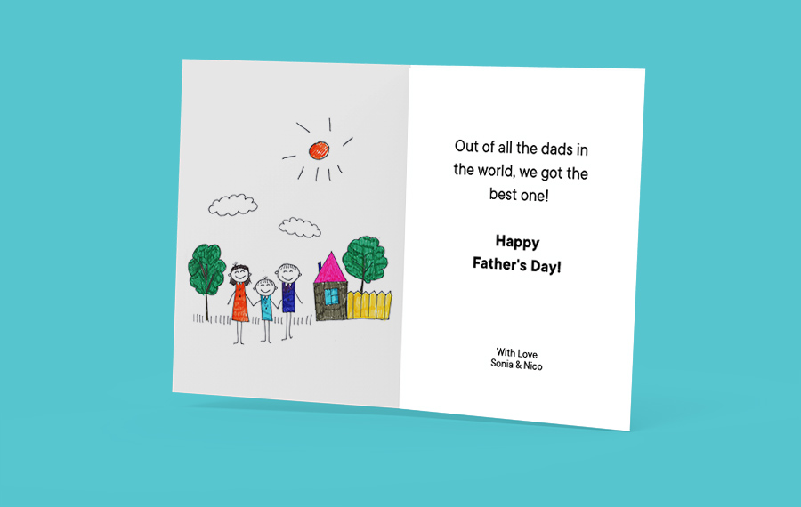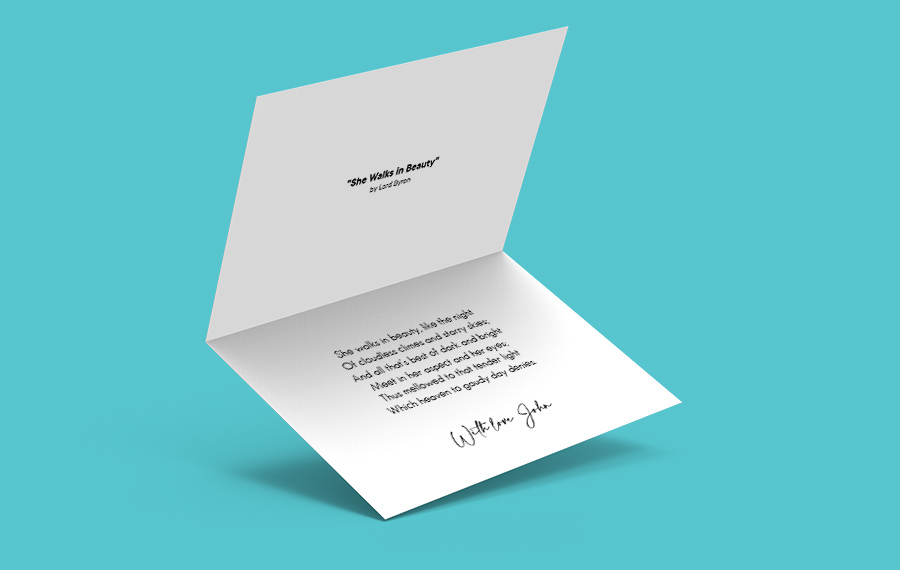 Ein kleines Gedicht, der Lieblingssongtext oder ausführliche Glückwünsche – die gefaltete Maxikarte bietet auf den Innenseiten viel Platz für deine persönlichen Worte. Diese kannst du bereits bei der Gestaltung direkt in einer beliebigen Schriftart und Farbe einfügen. Um deine Grüsse noch persönlicher zu machen, kannst du den gedruckten Text später mit Hand signieren.