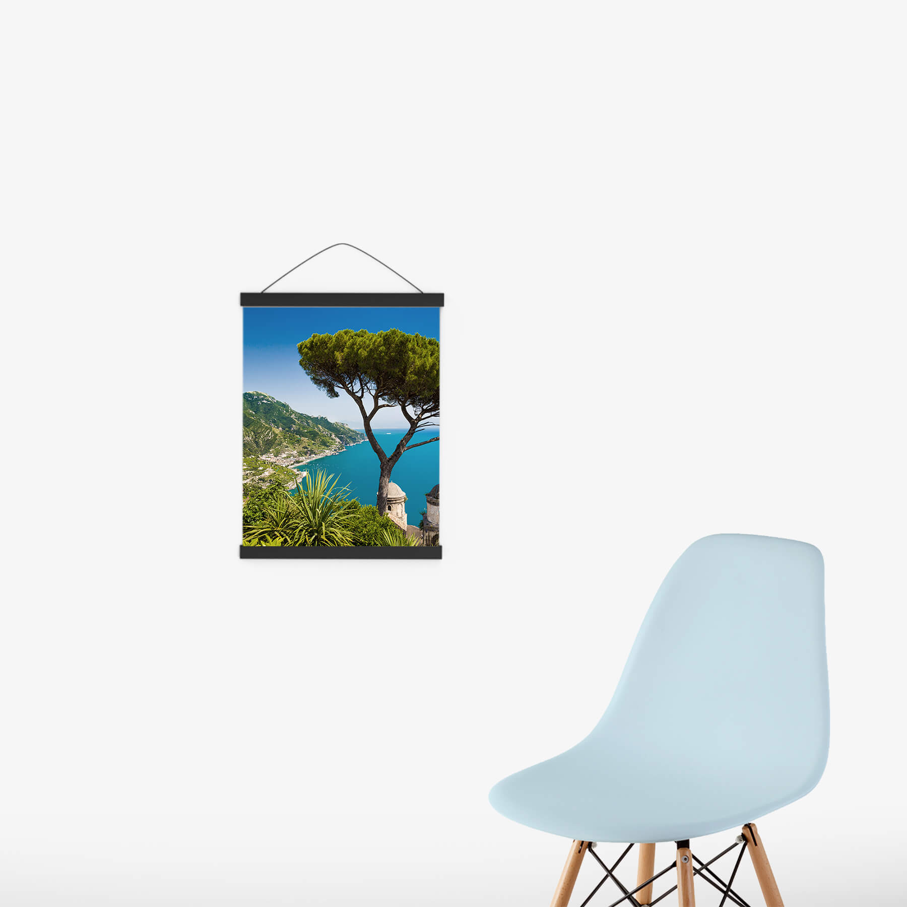 Die Posterleiste ist perfekt, um jederzeit ganz schnell und einfach dein Bild auszutauschen. Dazu musst du nur die magnetischen Holzleisten vom Bildrand lösen und ein neues Poster oder Foto einklemmen. Die leistungsstarken Magneten halten verschiedene Arten von Postern, Fotos und Plakaten fest. An der mitgelieferten Schnur, die du in der Länge variabel einstellen kannst, hängst du dein Bild ganz einfach an die Wand.